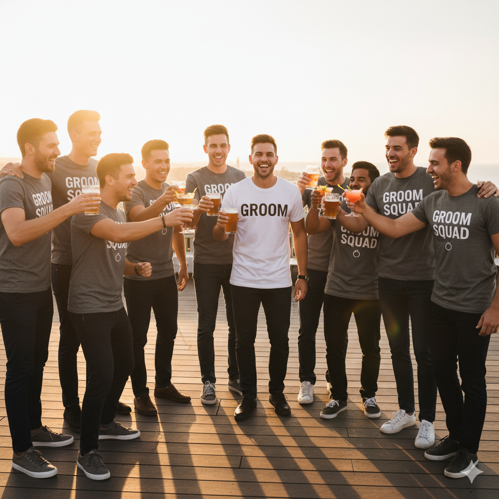 Let’s face it — no bachelor weekend is complete without a camera roll full of memories. Matching groom squad shirts make your group photos look coordinated and memorable. Whether you’re doing a bar crawl, golfing, or hitting the beach, these shirts make every snapshot feel like a moment worth framing.