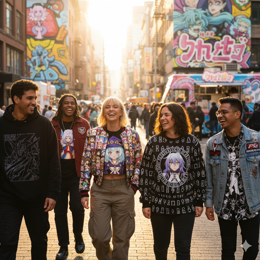 The anime aesthetic has deeply influenced global fashion trends, especially in streetwear and youth culture. Japanese pop culture — once seen as niche — has become a style statement worldwide.