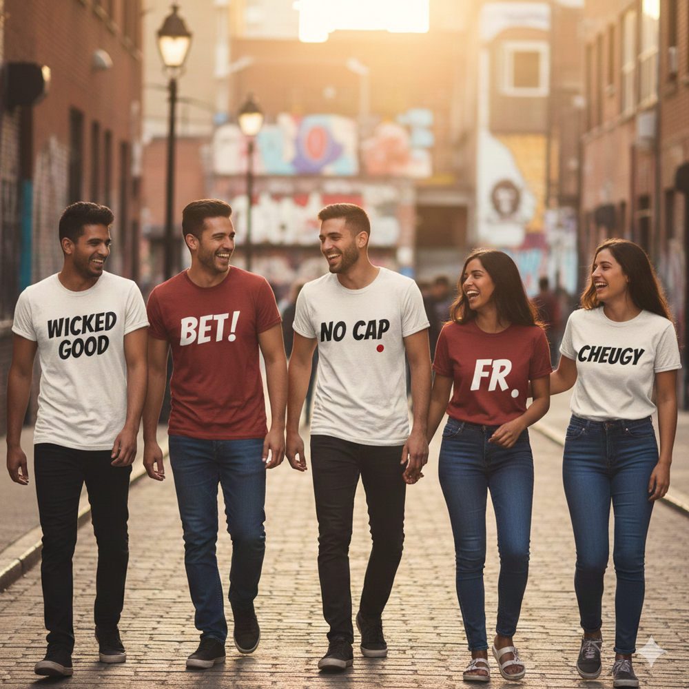 The internet loves inside jokes. Social media has amplified the popularity of regional phrases and helped slang spread far beyond its original home. What once stayed within neighborhoods now becomes viral content — and that visibility helps turn slang into wearable fashion.